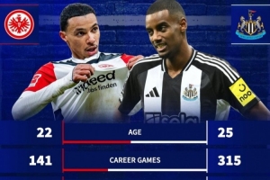 体育赛事-枪迷选谁?22岁埃基蒂克身价4千万&造27球,25岁伊萨克1亿&造28球